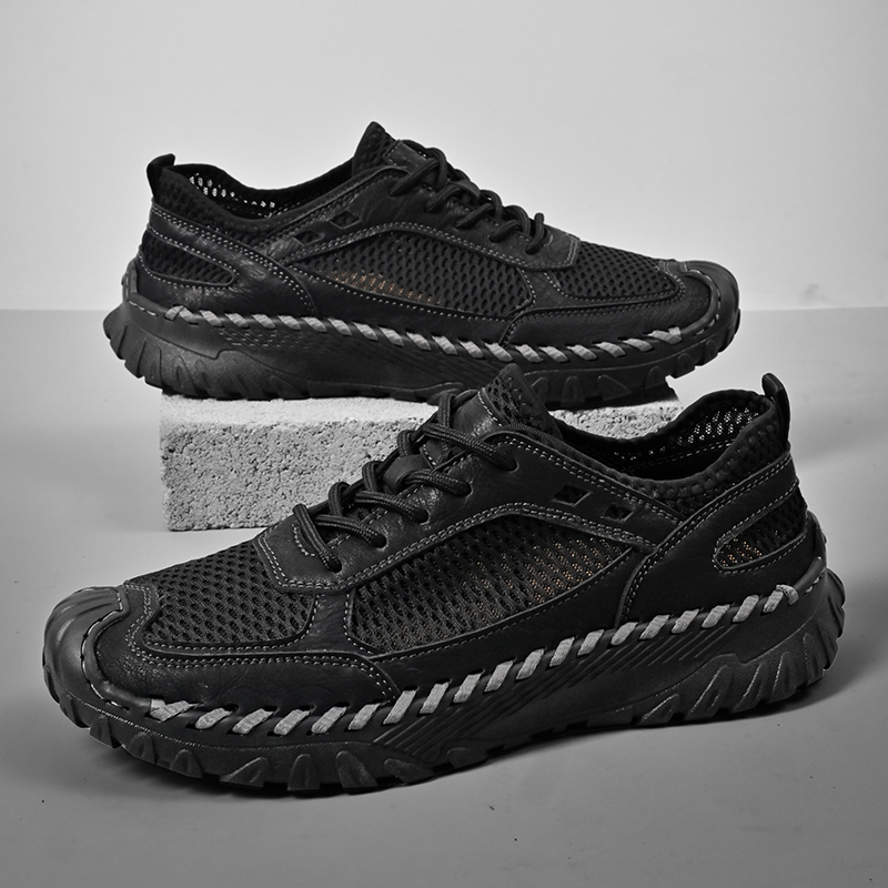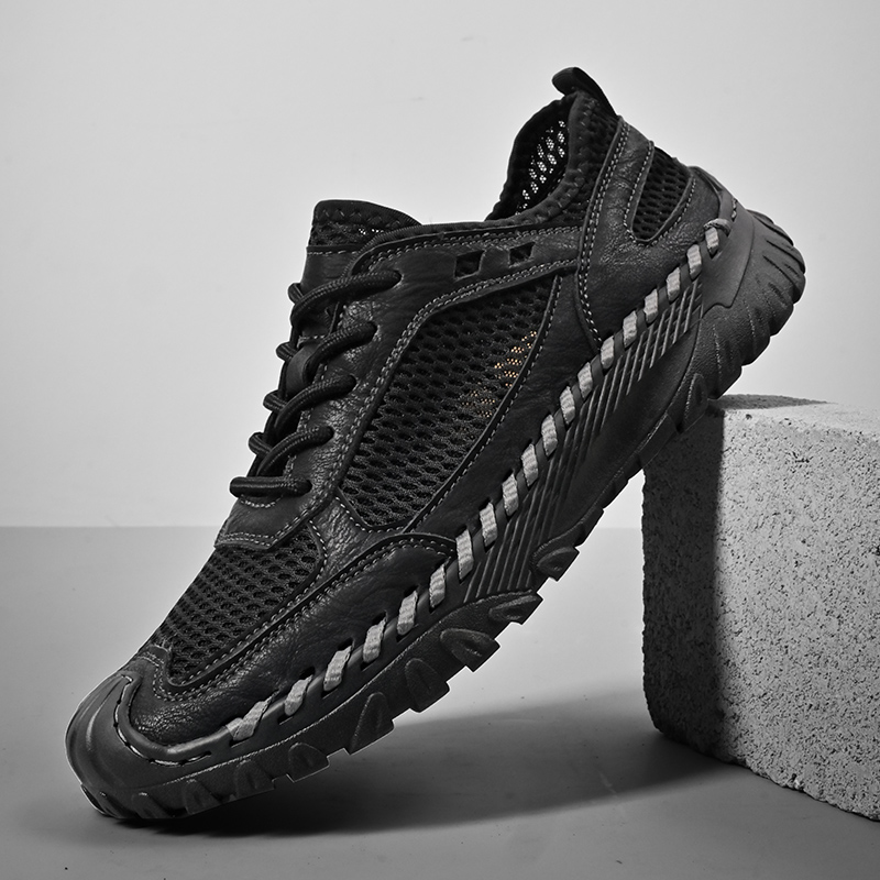 (⏰LAST DAY-60% OFF🛒)Men’s Genuine Leather Loafers – Breathable Mesh Slip-On Casual Shoes with Arch Support, Wide Toe Design, Hand-Sewn Stitching & Anti-Slip Sole for Work & Driving