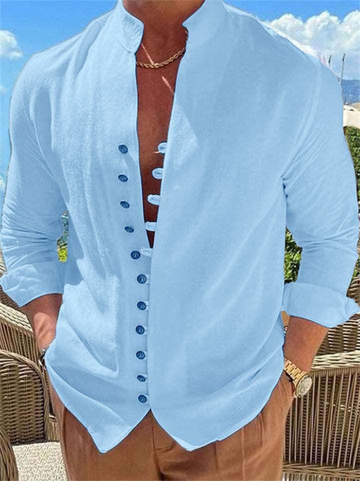 Male Retro Collared Button Up T-shirts