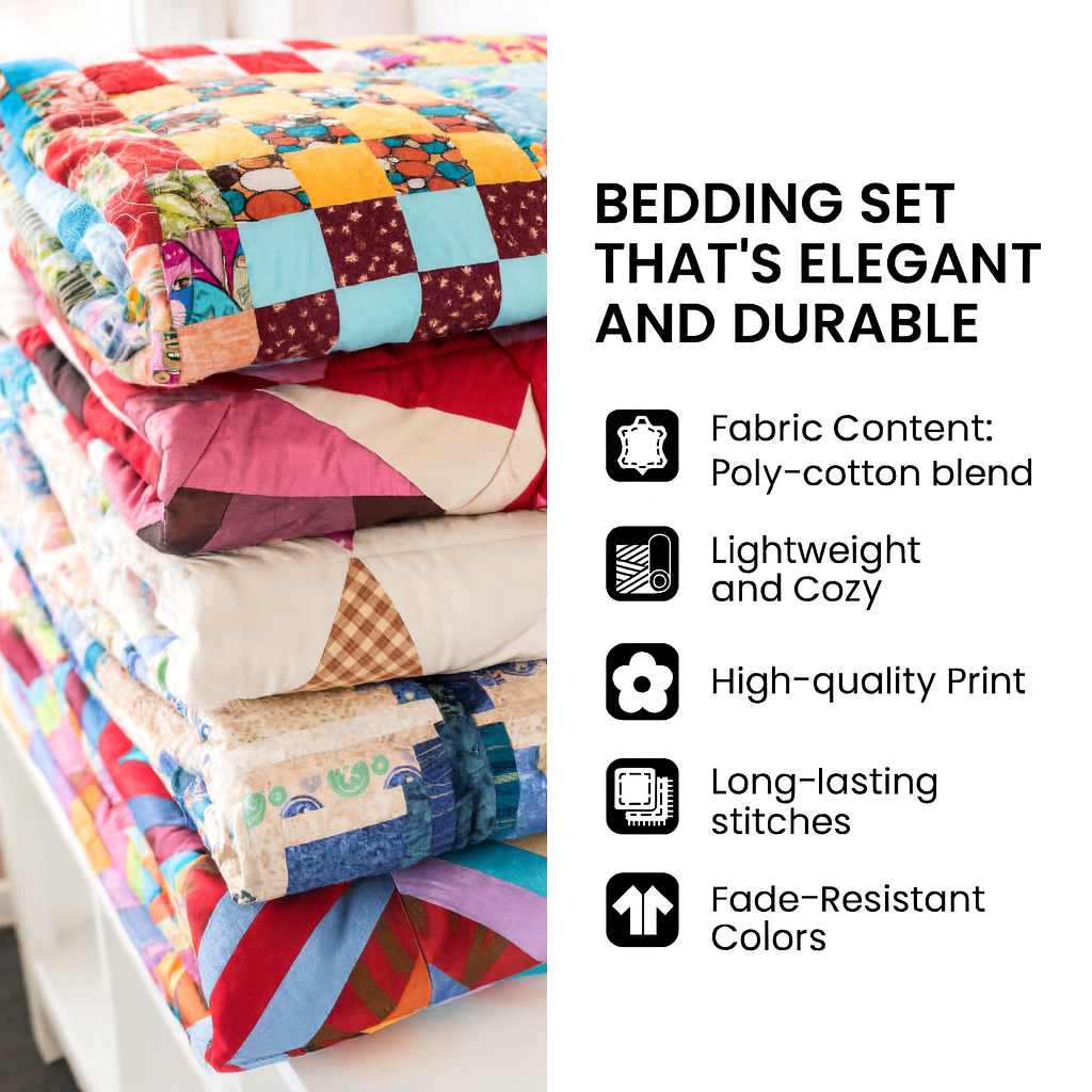 Quality Material: Our quilts are crafted from a premium cotton-poly blend, combining the softness and breathability of cotton with the durability and easy care of polyester.